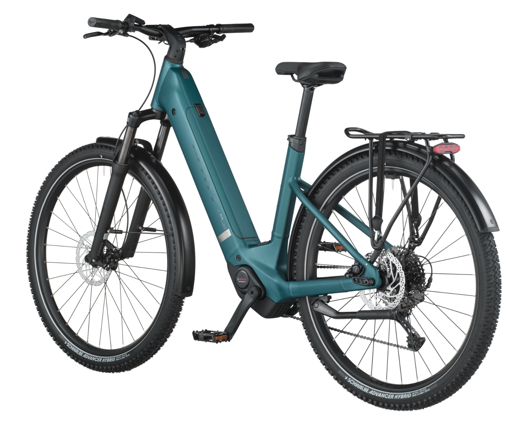 The SCOTT AXIS eRIDE is equipped with the Bosch Performance motor and a 540Wh battery, perfect for weekend explorations in the outdoors. Wanna bring the kids and dogs with you? No problem. Thanks to the new Syncros Heavy Duty rack that can carry up to 27kg, and the new Syncros Thru-Axle enabling you to tow cargo trailers, you can load up the Axis with everything you need to make the most of your rides.